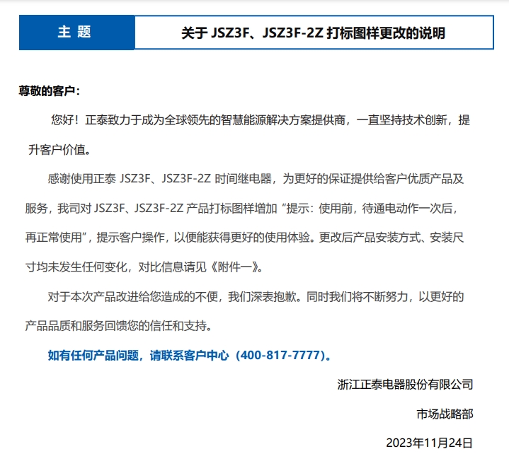 關(guān)于 JSZ3F、JSZ3F-2Z 打標圖樣更改的說明