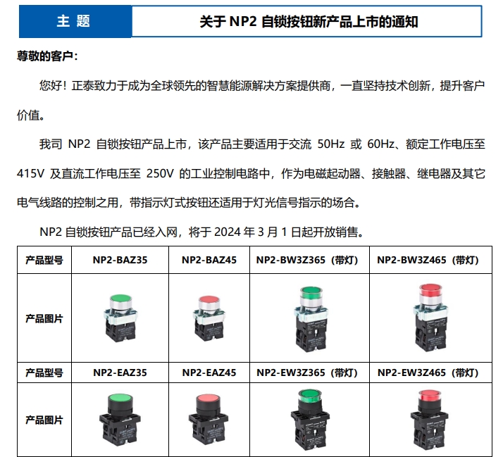 關于 NP2 自鎖按鈕新產(chǎn)品上市的通知