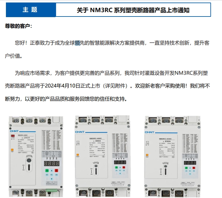 關(guān)于 NM3RC 系列塑殼斷路器產(chǎn)品上市通知