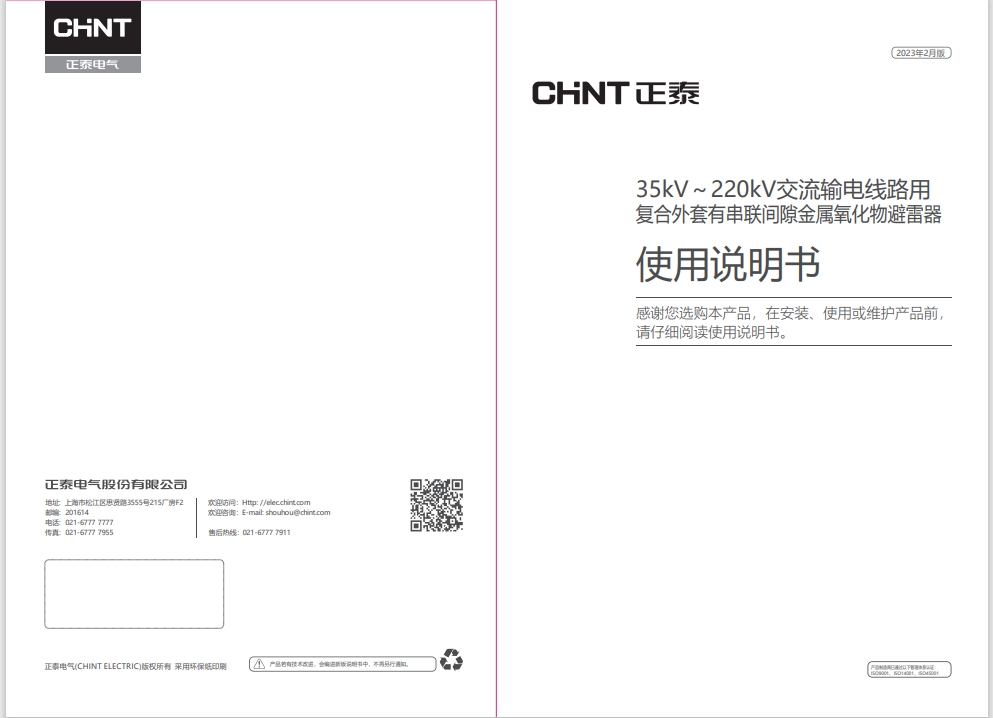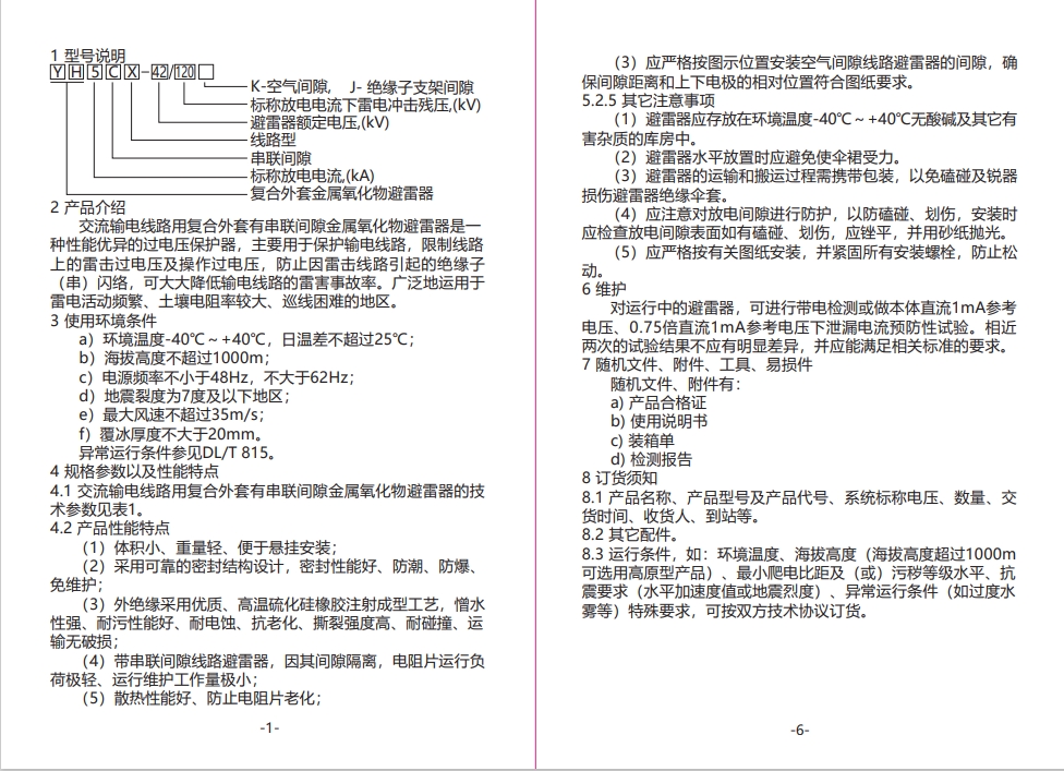 35kV~220kV交流輸電線路用 復(fù)合外套有串聯(lián)間隙金屬氧化物避雷器 使用說(shuō)明書
