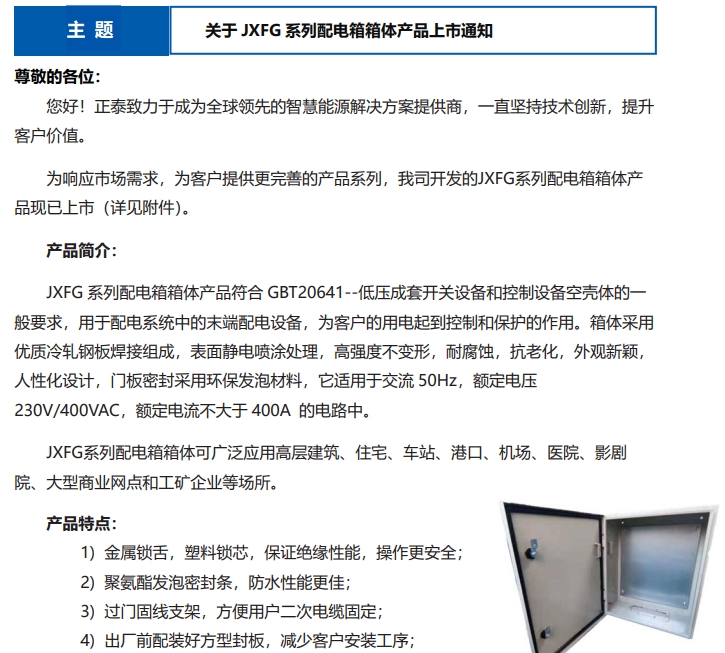 關(guān)于 JXFG 系列配電箱箱體產(chǎn)品上市通知
