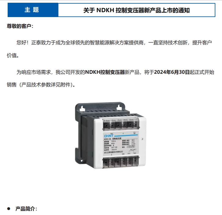 關(guān)于 NDKH 控制變壓器新產(chǎn)品上市的通知