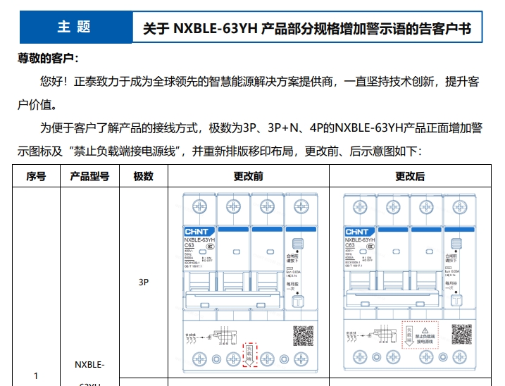 關(guān)于 NXBLE-63YH 產(chǎn)品部分規(guī)格增加警示語的告客戶書