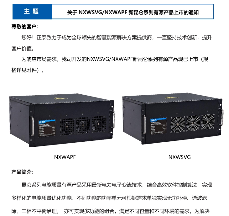 關于NXWSVG/NXWAPF新昆侖系列有源產品上市的通知