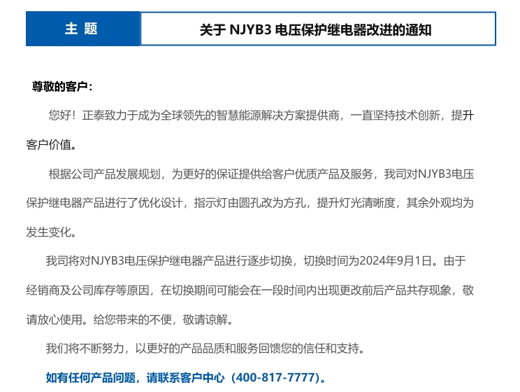 關(guān)于NJYB3電壓保護(hù)繼電器改進(jìn)的通知