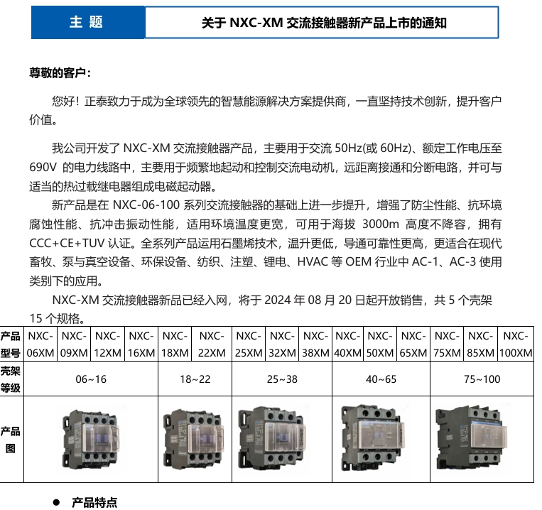 關(guān)于NXC-XM交流接觸器新產(chǎn)品上市的通知
