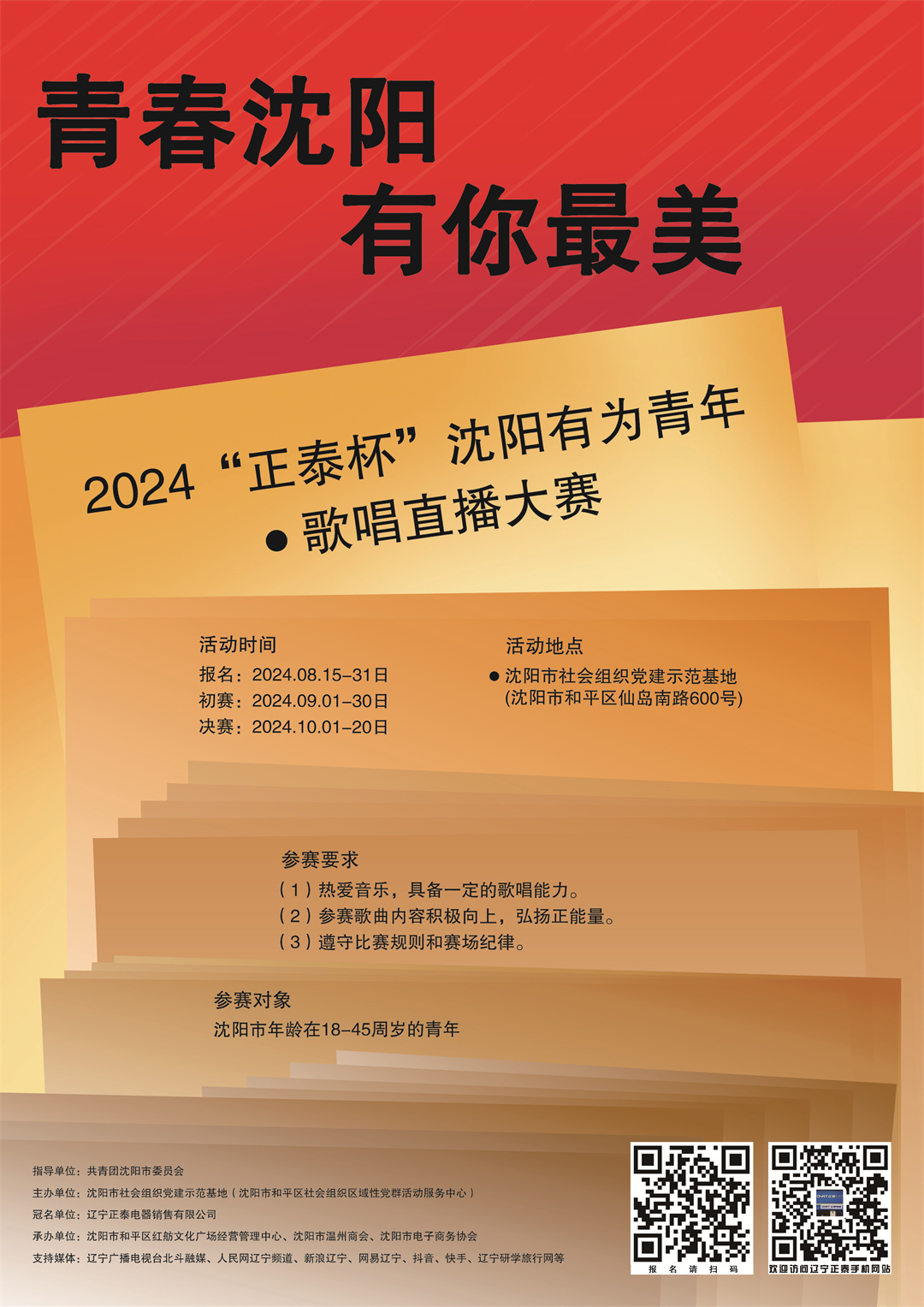 青春沈陽 有你最美 2024“正泰杯”沈陽有為青年?歌唱直播大賽8月15日開始報(bào)名