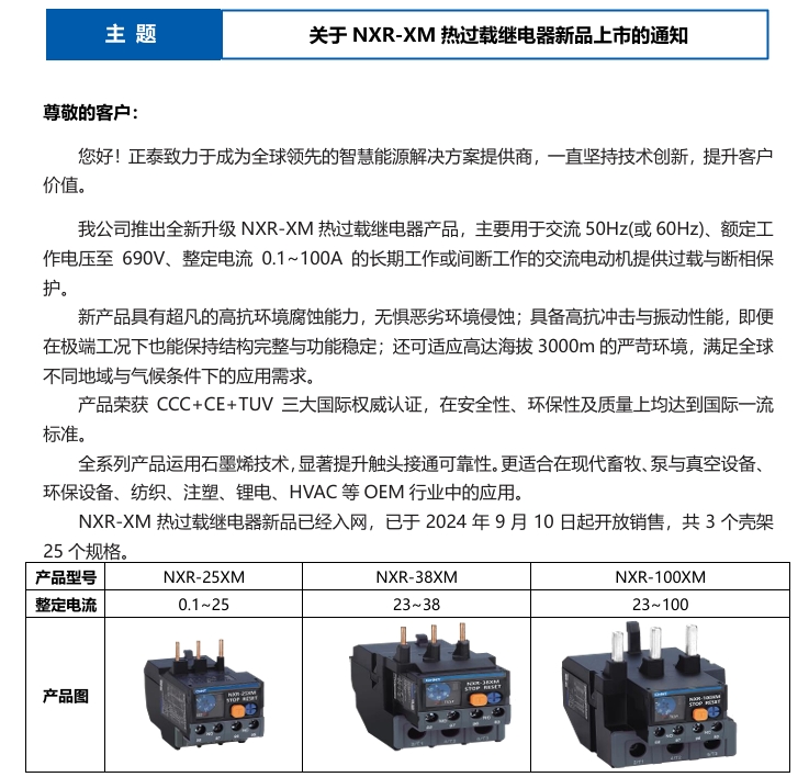 關(guān)于NXR-XM熱過載繼電器新品上市的通知