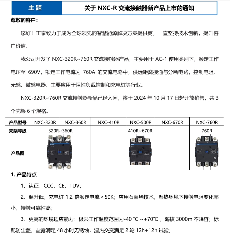 關于NXC-R交流接觸器新產(chǎn)品上市的通知