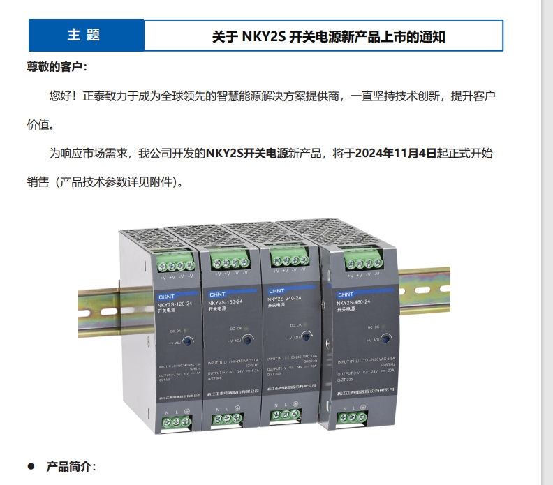 關(guān)于 NKY2S 開關(guān)電源新產(chǎn)品上市的通知