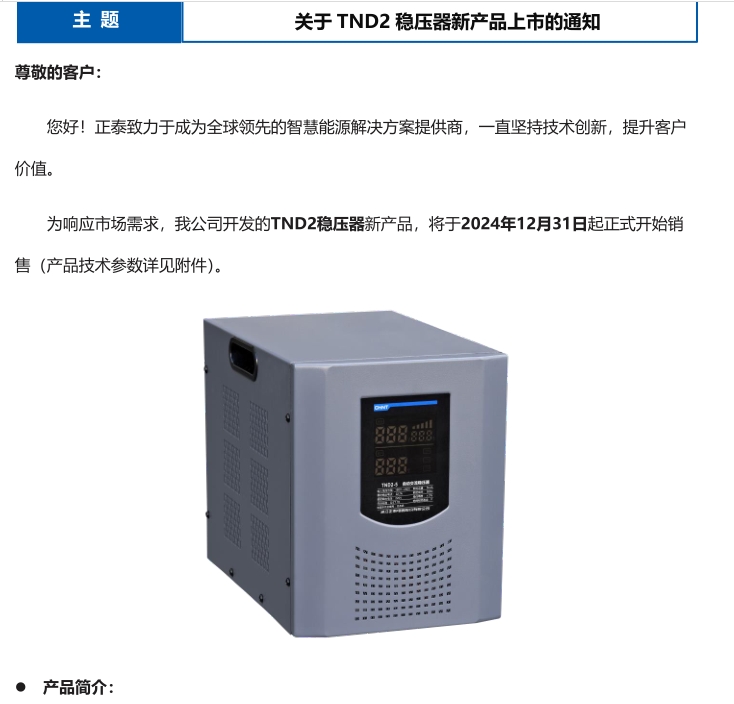 關(guān)于 TND2 穩(wěn)壓器新產(chǎn)品上市的通知