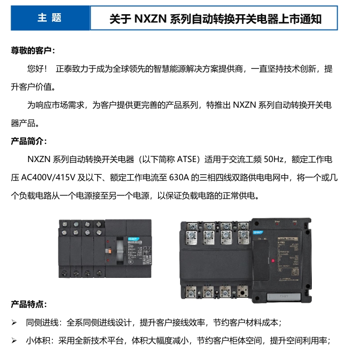 關(guān)于 NXZN 系列自動轉(zhuǎn)換開關(guān)電器上市通知