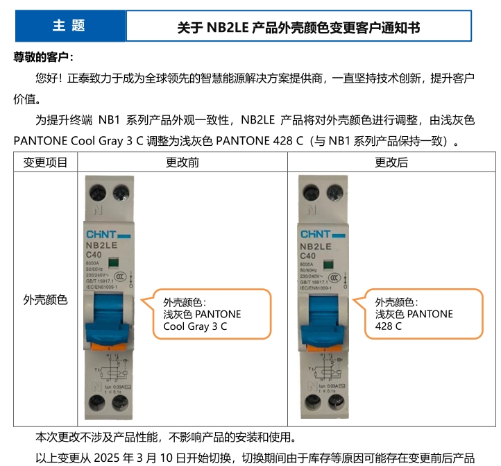 關(guān)于 NB2LE 產(chǎn)品外殼顏色變更客戶通知書
