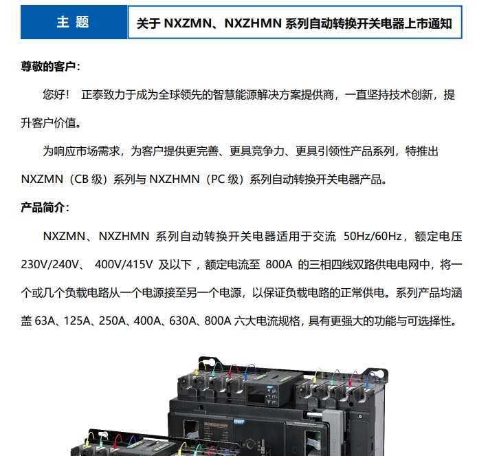 關(guān)于 NXZMN、NXZHMN 系列自動(dòng)轉(zhuǎn)換開(kāi)關(guān)電器上市通知