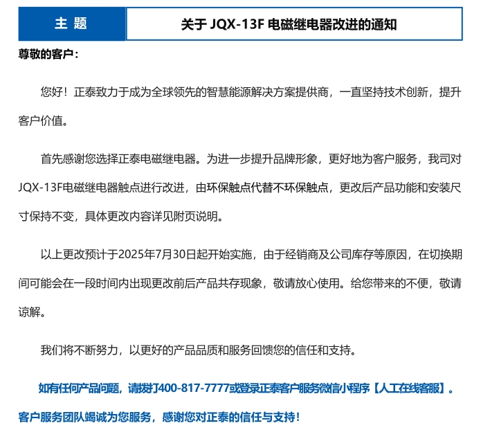 關(guān)于 JQX-13F 電磁繼電器改進(jìn)的通知