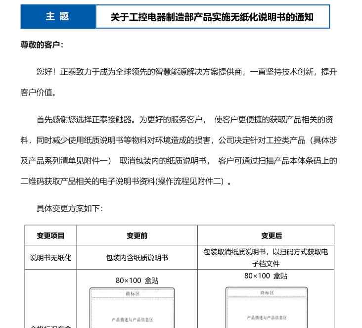 關(guān)于工控電器制造部產(chǎn)品實(shí)施無(wú)紙化說明書的通知